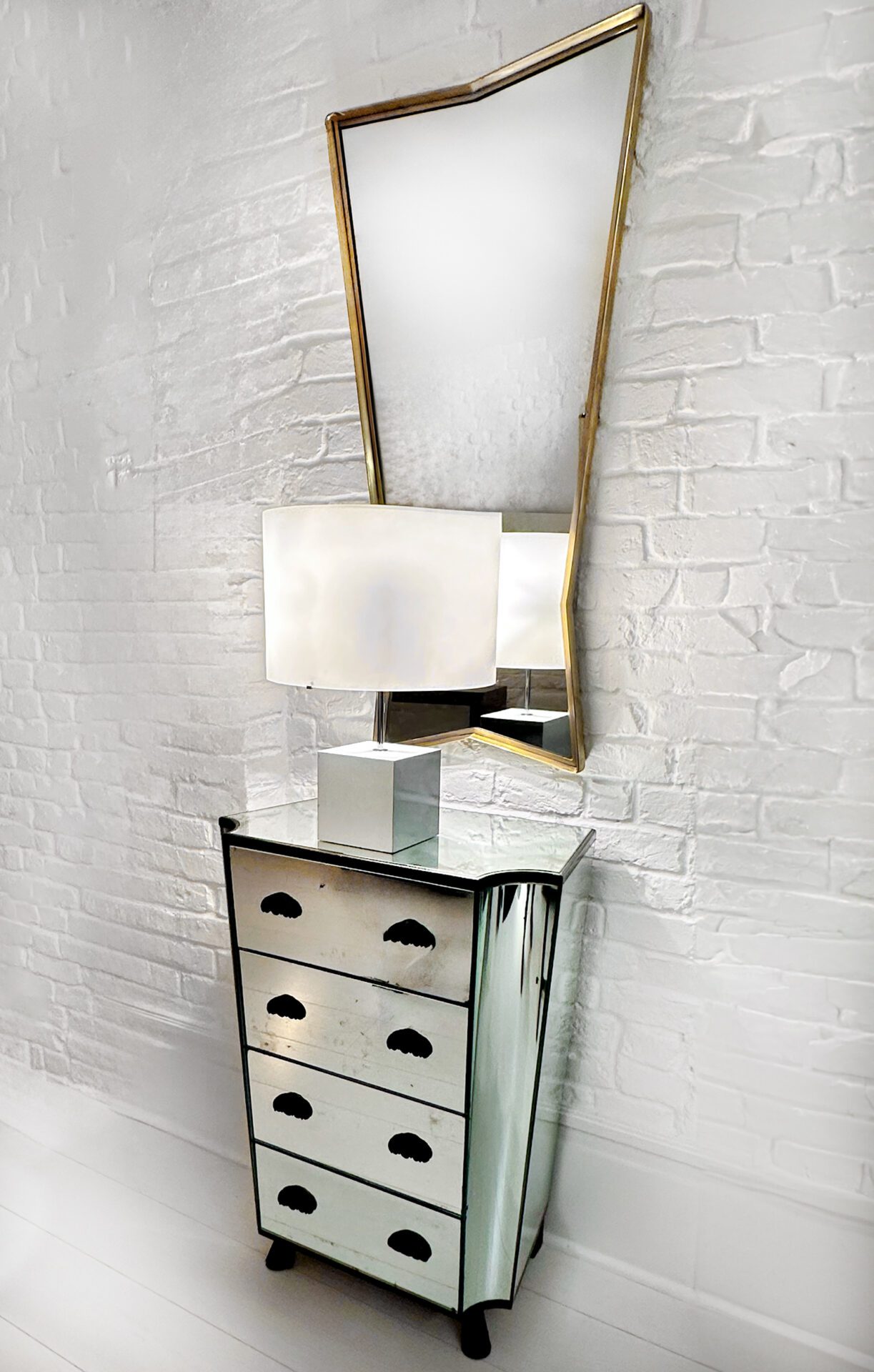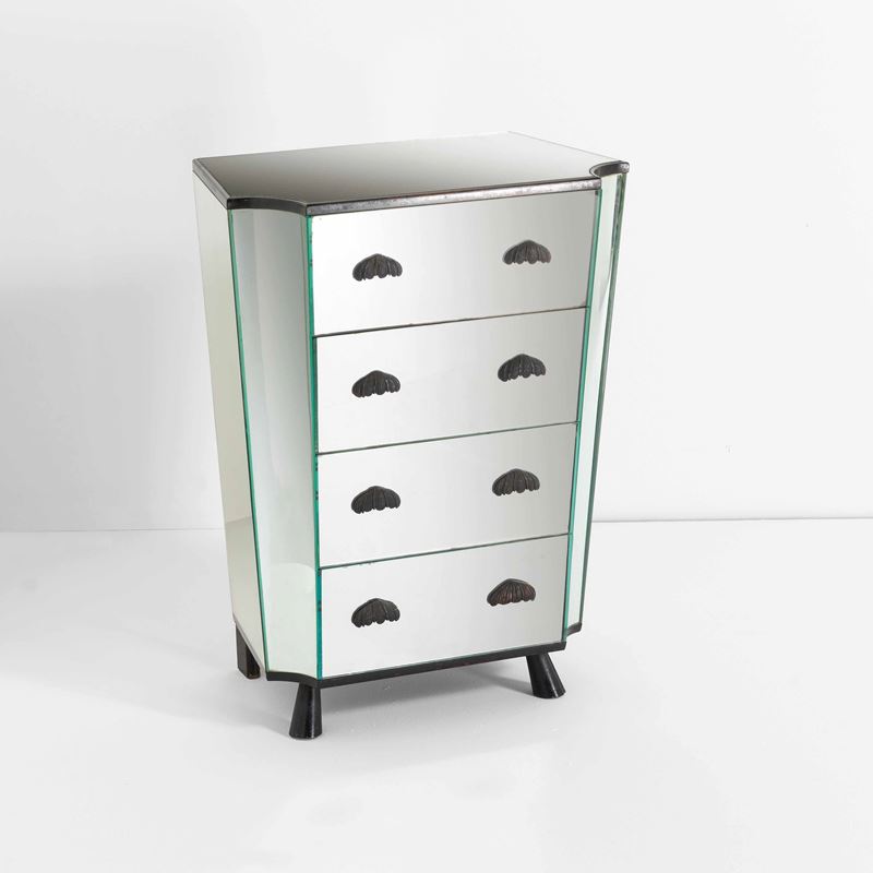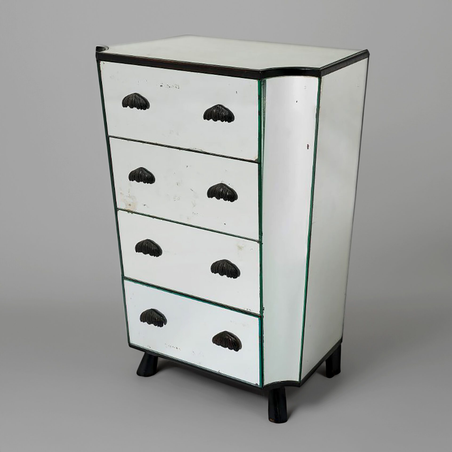 Mirrored glass, ebonised wood and bronze