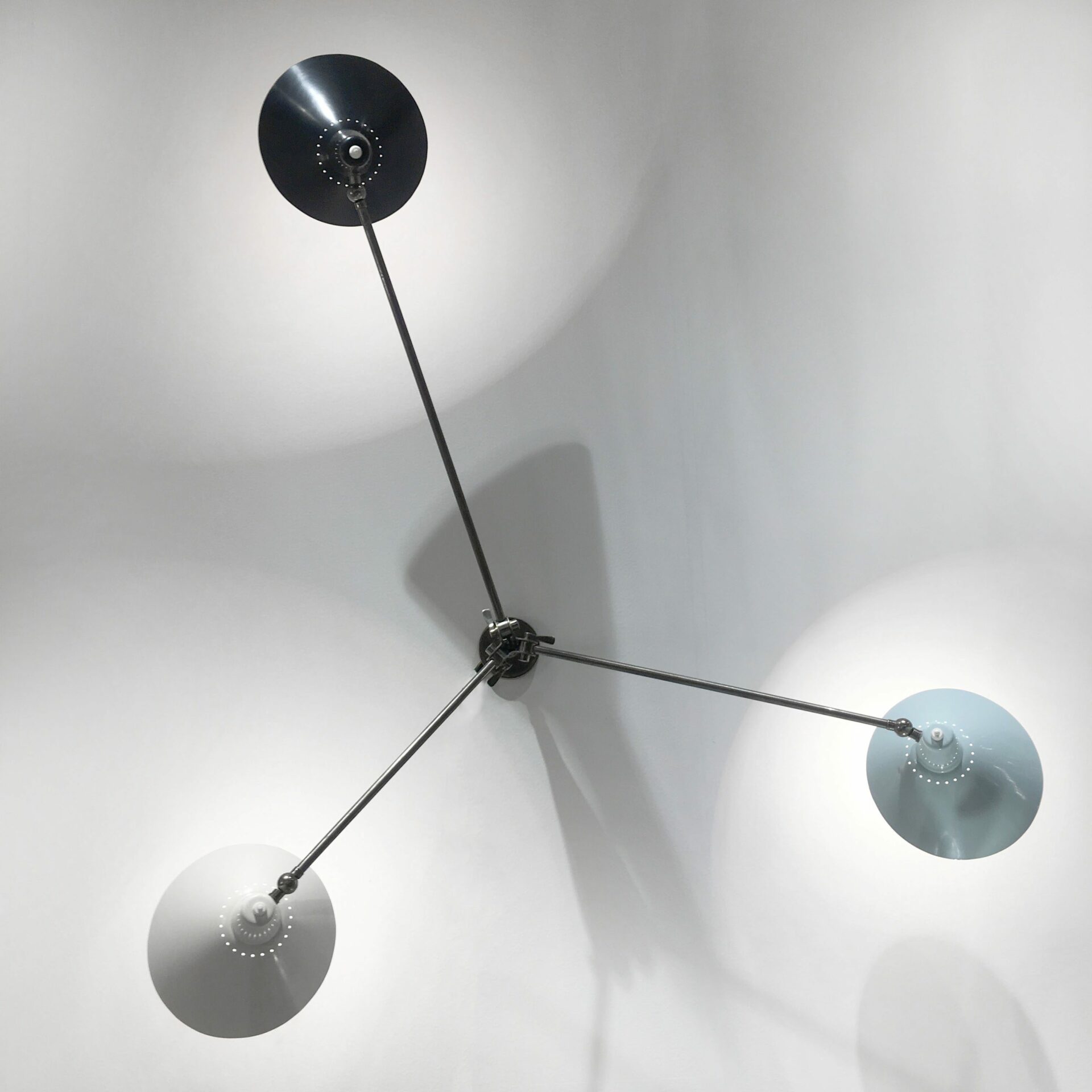 Rare three arm adjustable wall or ceiling light