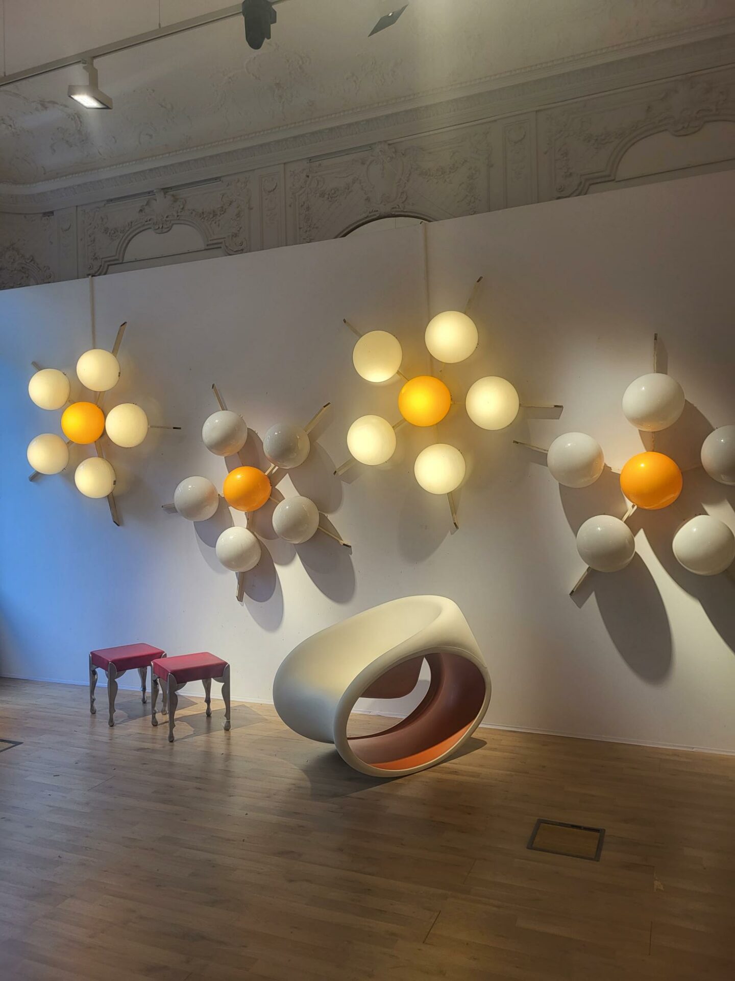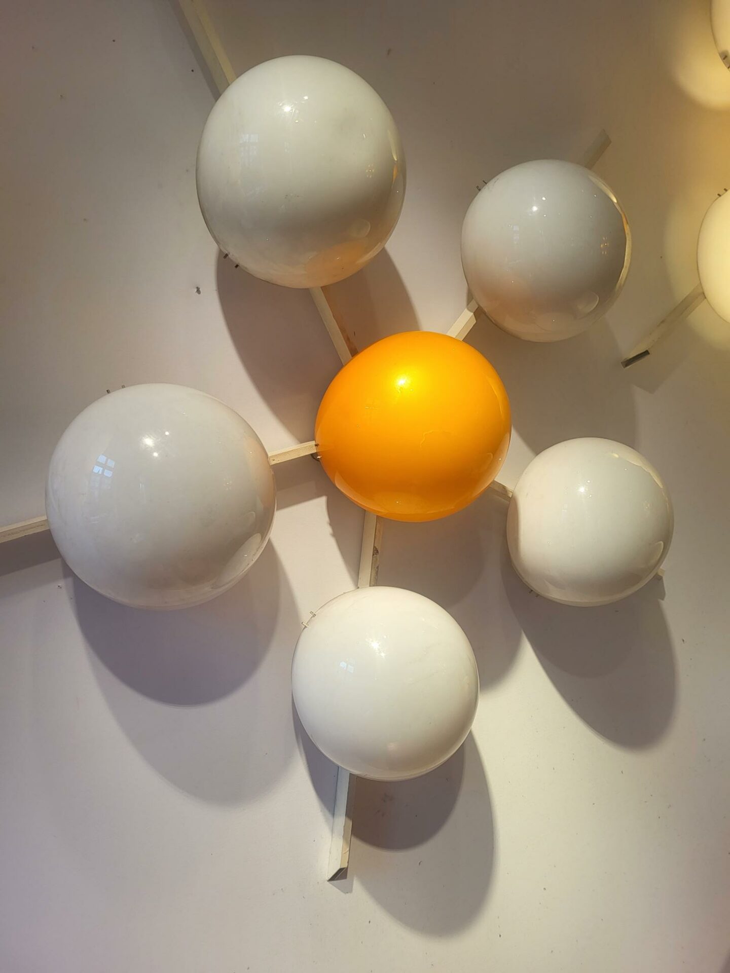 Stilux Pair of monumental plafonniers or wall lights with six shades Enamelled metal and coloured perspex shades c. 1958 Italy