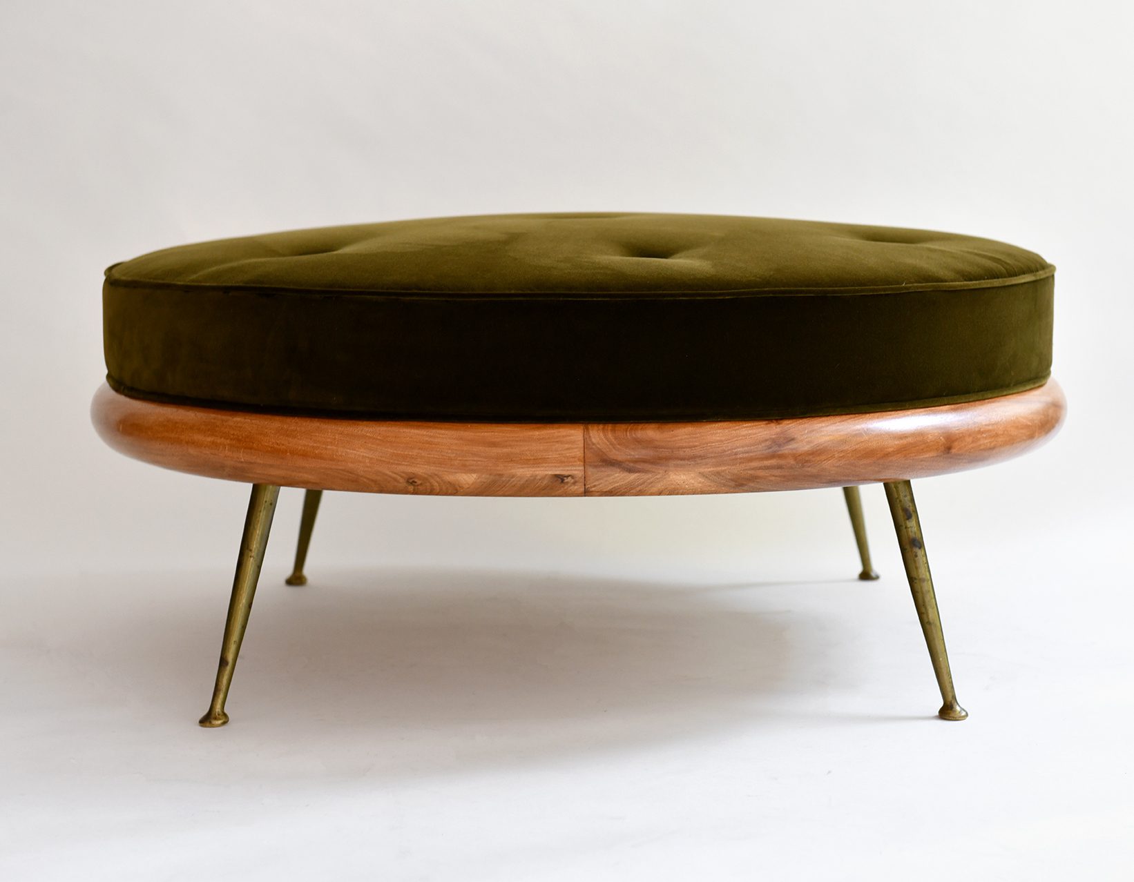T.H. Robsjohn-Gibbings (1905-1976) Elegant Ottoman, Model 1745 Walnut & Brass legs Produced by Widdicomb c. 1955 USA