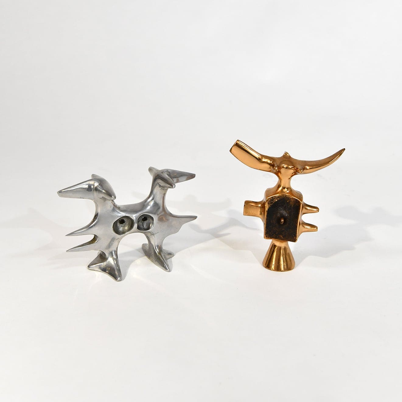 Victor Roman (1937-1995) Anthropomorphic figures Cast polished bronze & cast polished aluminium One signed, the other stamped c. 1970 France