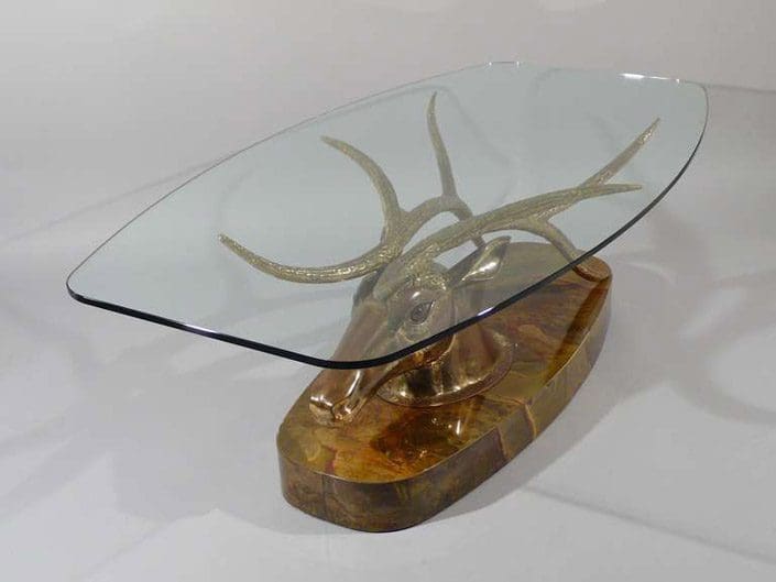 Jacques Duval-Brasseur (1934-) Deer coffee table Gilt brass, glass eyes patinated brass base c.1970 France Signed