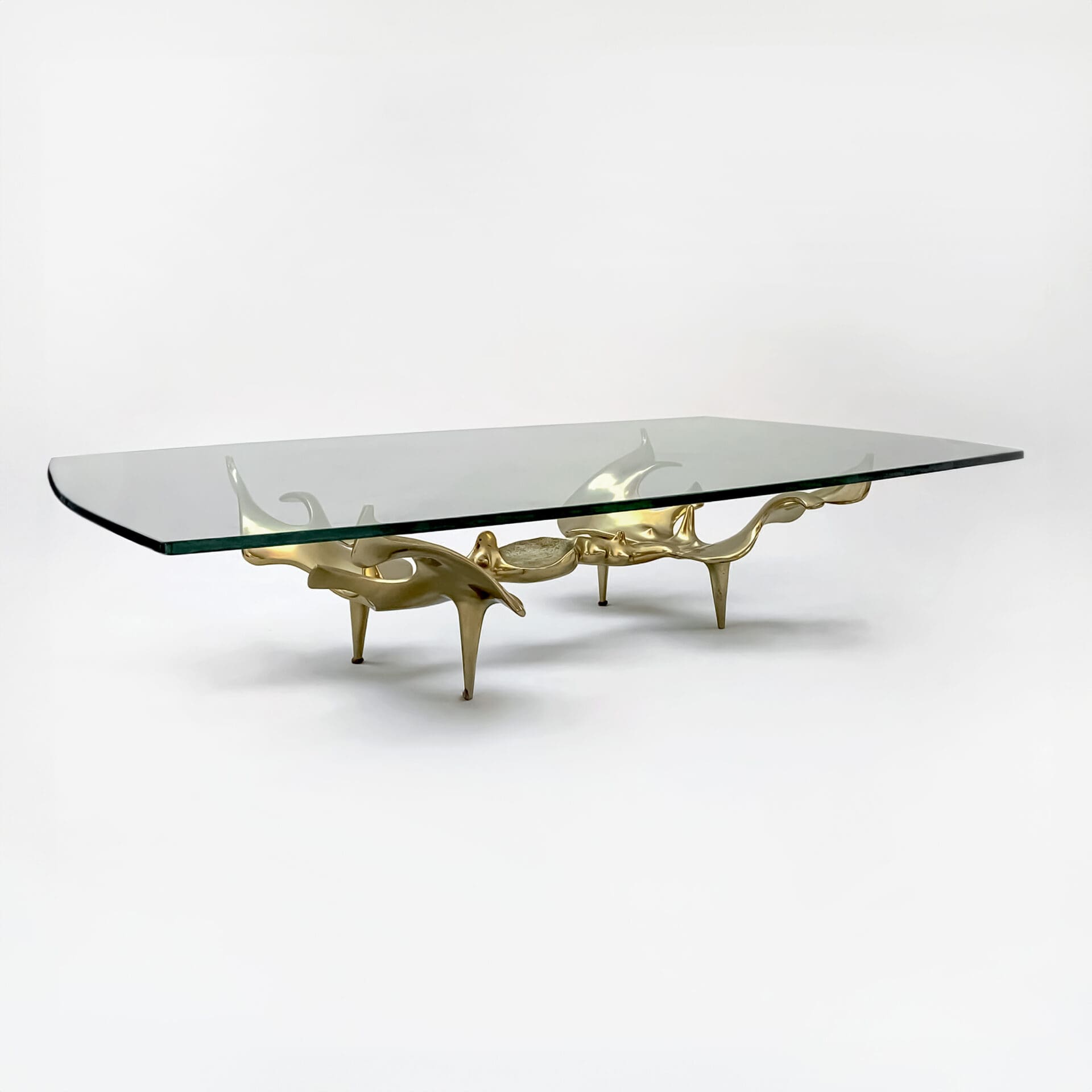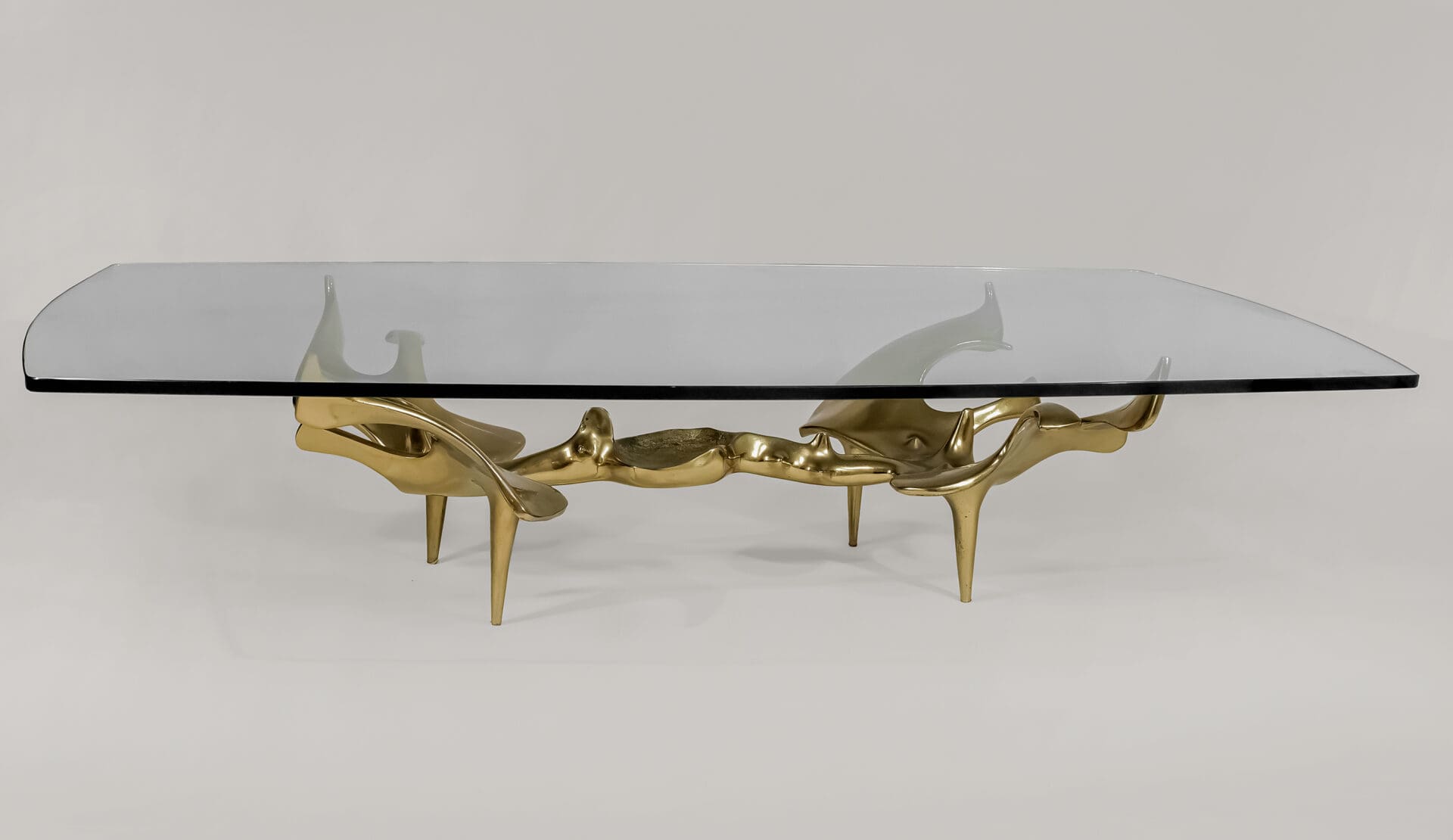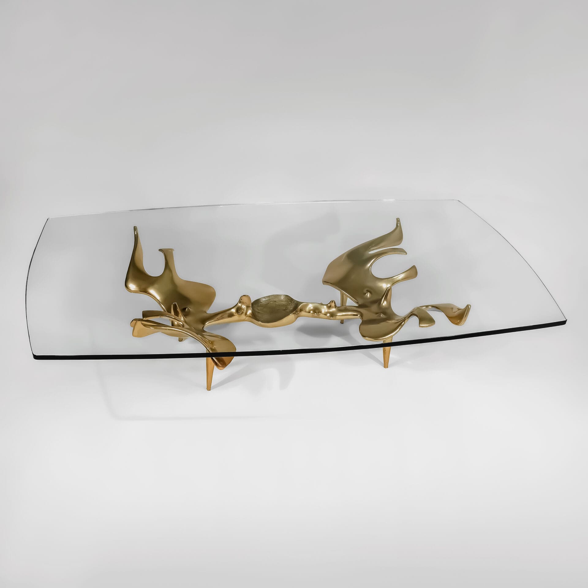 Victor Roman (1937-1995) Sculptural anthropomorphic coffee table Cast bronze, original shaped glass top Signed and numbered 3/8 c. 1970 France
