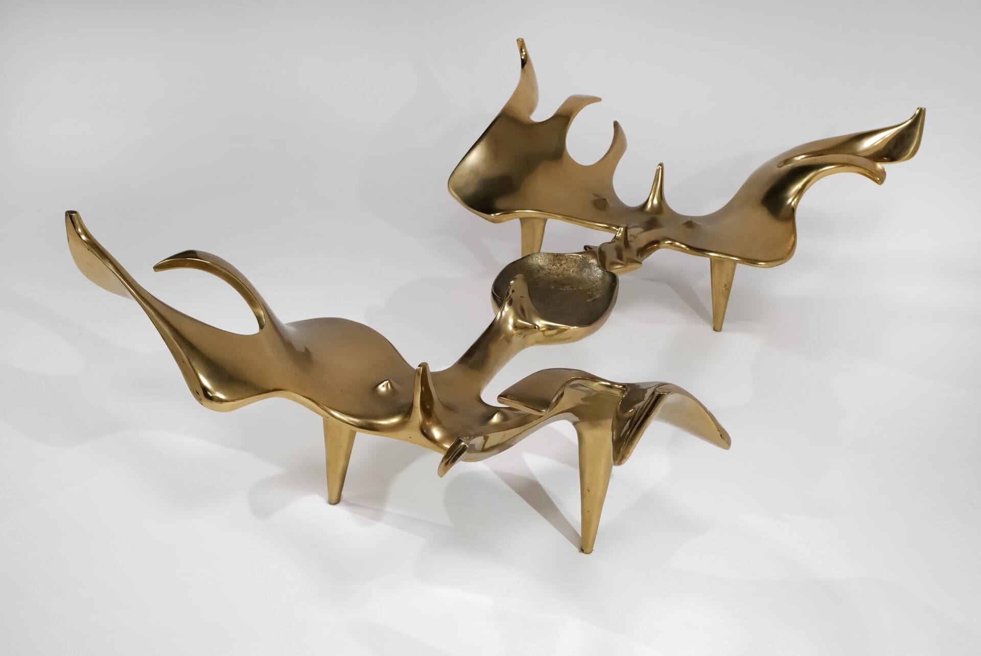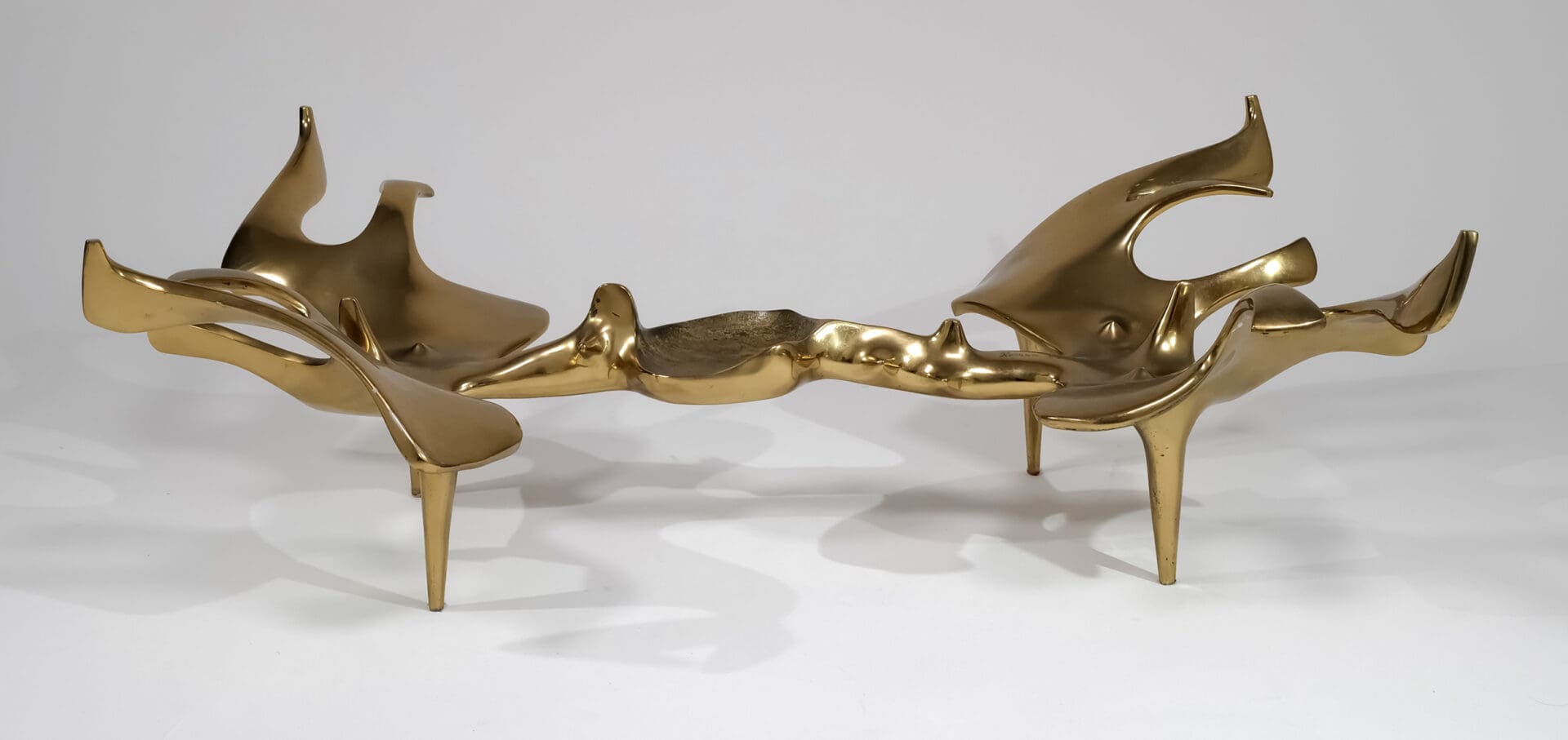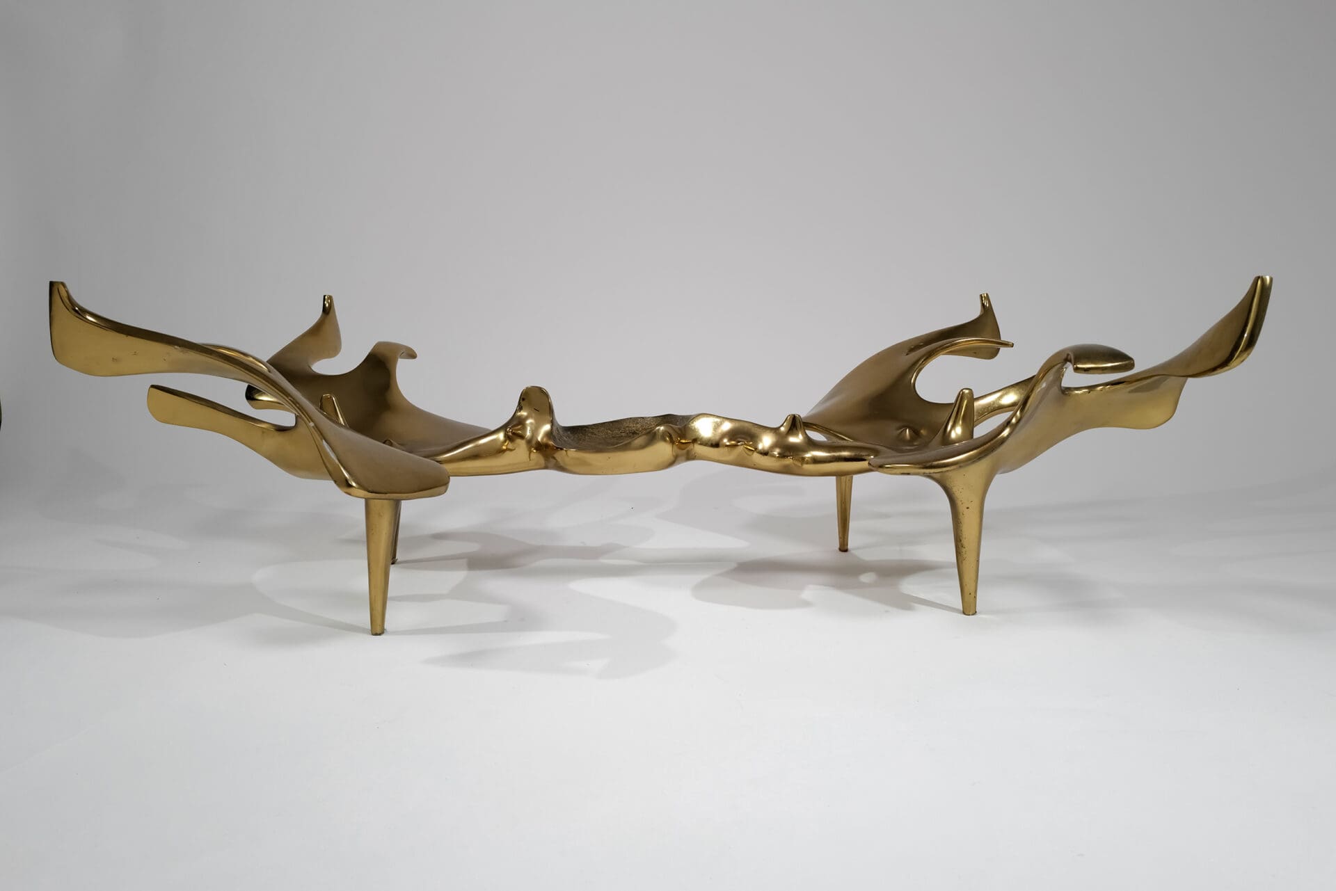 Victor Roman (1937-1995) Sculptural anthropomorphic coffee table Cast bronze, original shaped glass top Signed and numbered 3/8 c. 1970 France